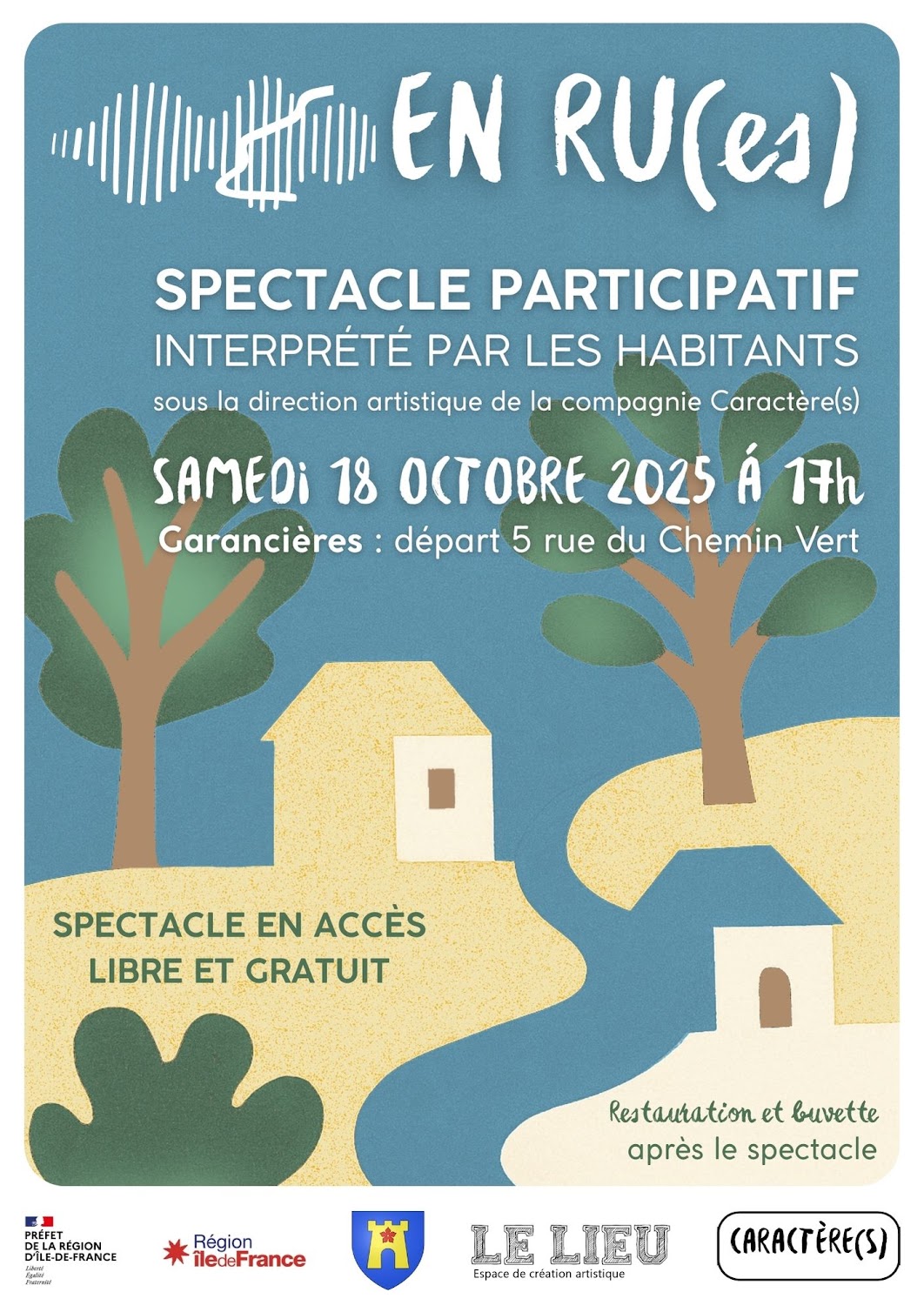 Animation d’ateliers avec des classes de maternelles, de primaires et des habitant.e.s de Garancière (78) et co-création (composition et direction musicale) dans le cadre du spectacle En ru (es) écrit et mis en scène par Mikaëlle Fratissier avec les cies Caractères et Les Fugaces (Le lieu).